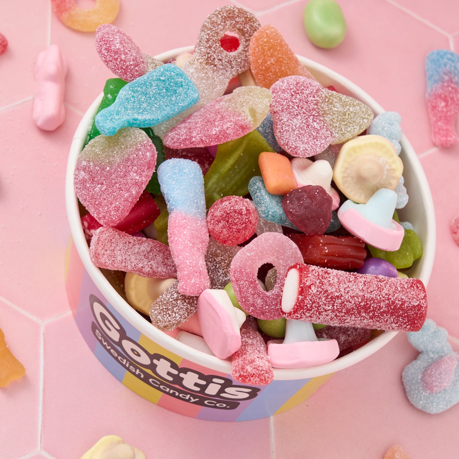 It’s totally up to you! Choose from a variety of Swedish favourites—sour belts, liquorice, gummies, and more. You’re in full control of the flavours.